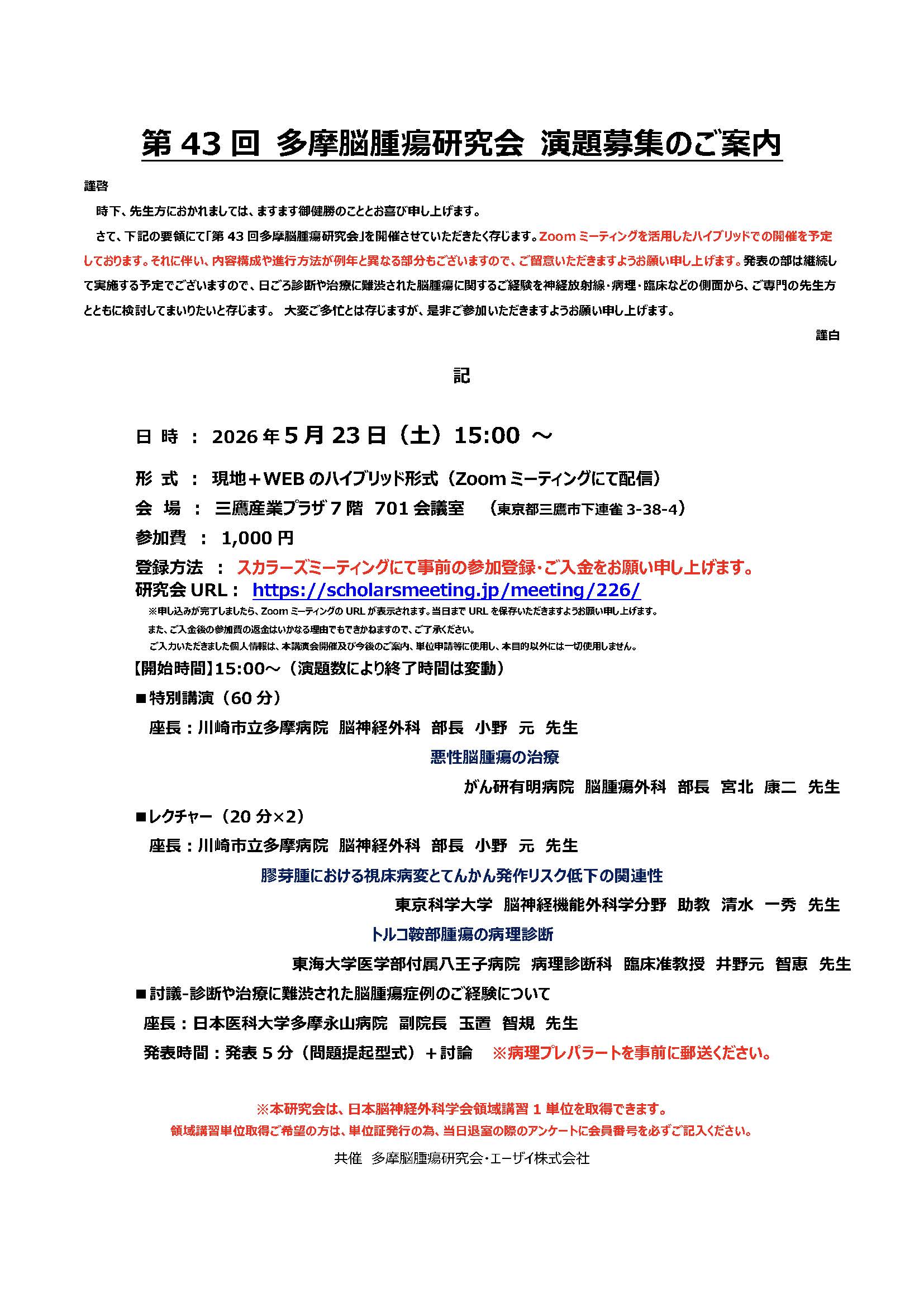学術集会や研究会で演題の募集/応募を行うことが出来ます。主催者は演題の一覧閲覧や結果の通知を行うことが出来ます。